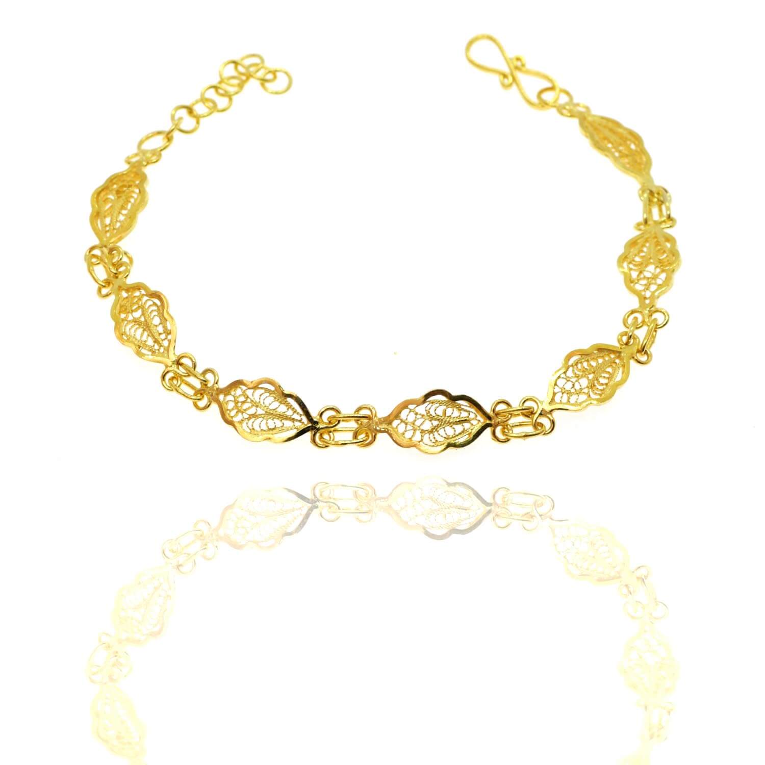 Yaprak Model 22 K Altın Kaplama 925 Ayar Gümüş Bileklik